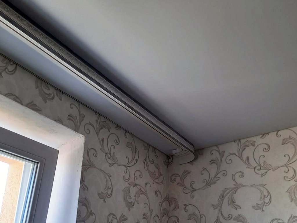 г. Медынь. Монтаж матового потолка, установка потайного карниза с подсветкой.